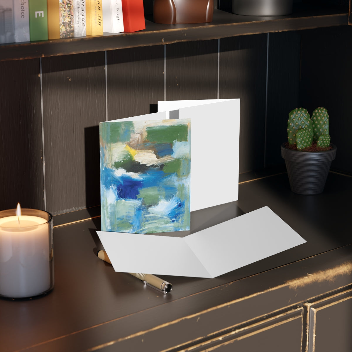 Blue/Green With Emily's Feather - Greeting cards (8 pcs)