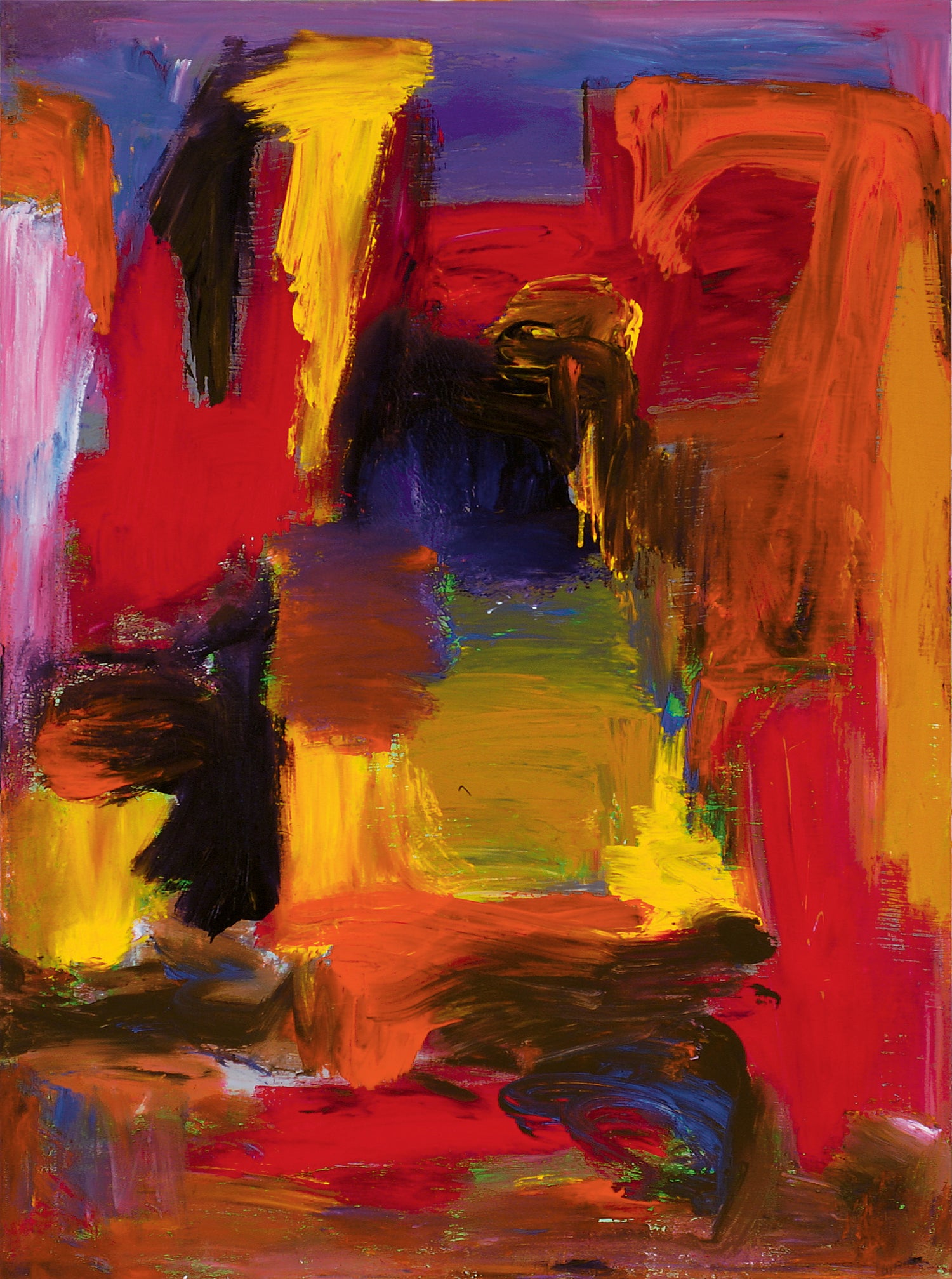 This is a hand-painted original and a one-of-a-kind collector's item. The melding of bold and brilliant colors make this exciting fiery piece seem to move and electrify.