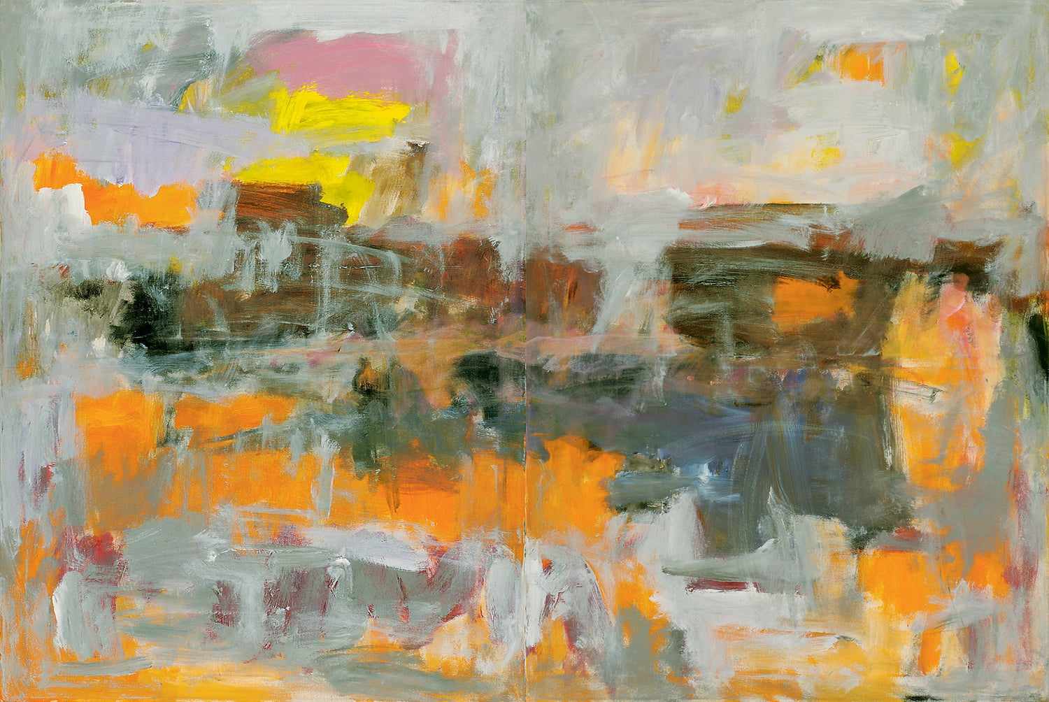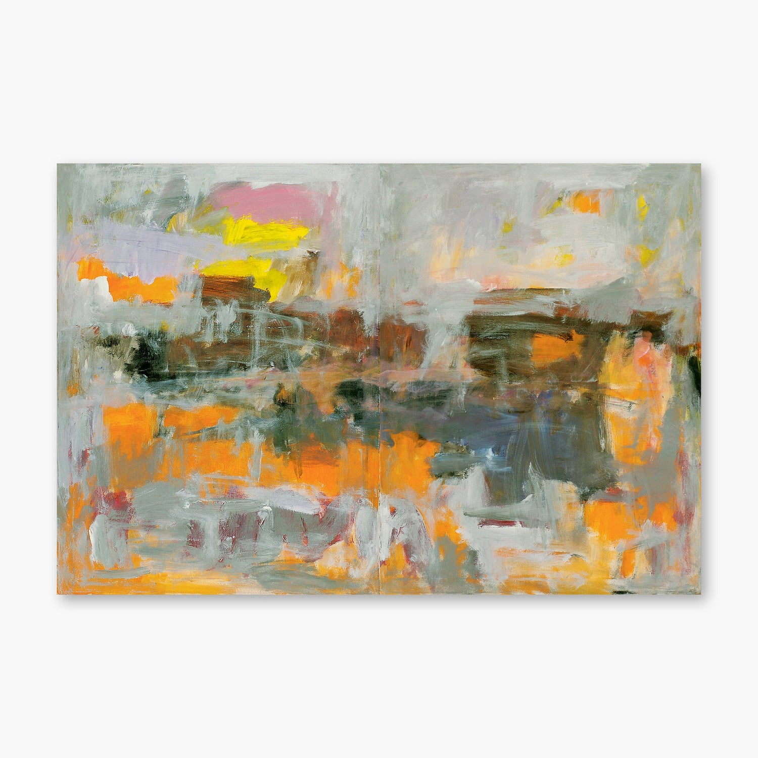 This is a hand-painted original and a one-of-a-kind collector's item. This diptych reminiscent of an foggy autumn day is beautiful and snazzy at the same time.