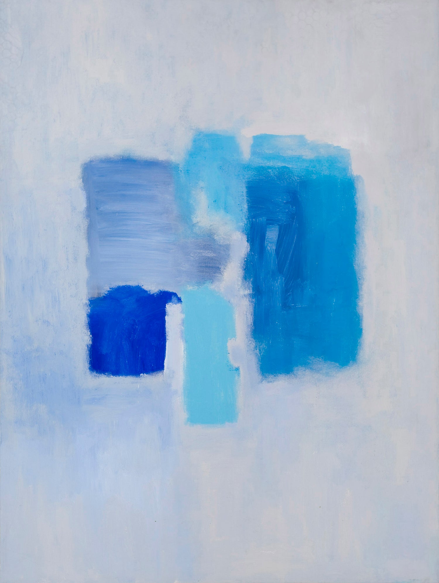 This is a hand-painted original and a one-of-a-kind collector's item. The color field blocks of turquoise and blue float on a light blue canvas. Inspired by some of Rothko's work, this painting is a gorgeous icon within Tom Kranjacs' collection. When at NYU, Tom Kranjac's friend, Helene Aylon, a very talented artist studying under Ad Reinhardt, knew others like Mark Rothko and these influences inspired Toms' works.
